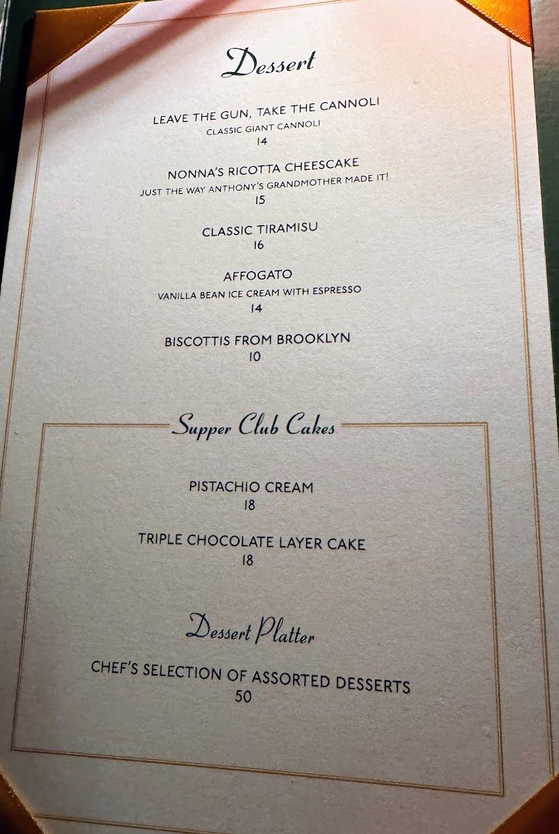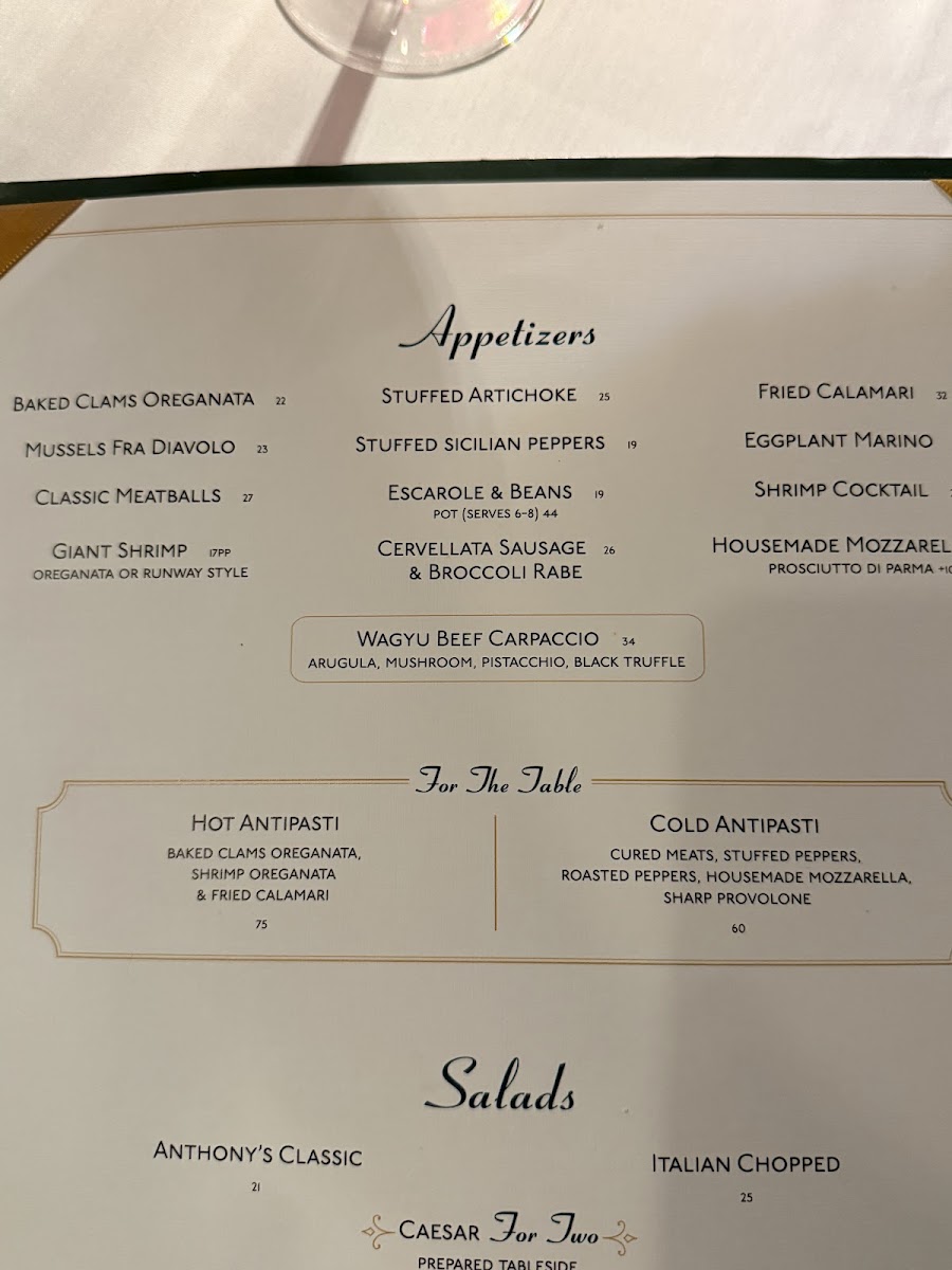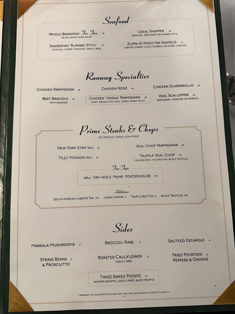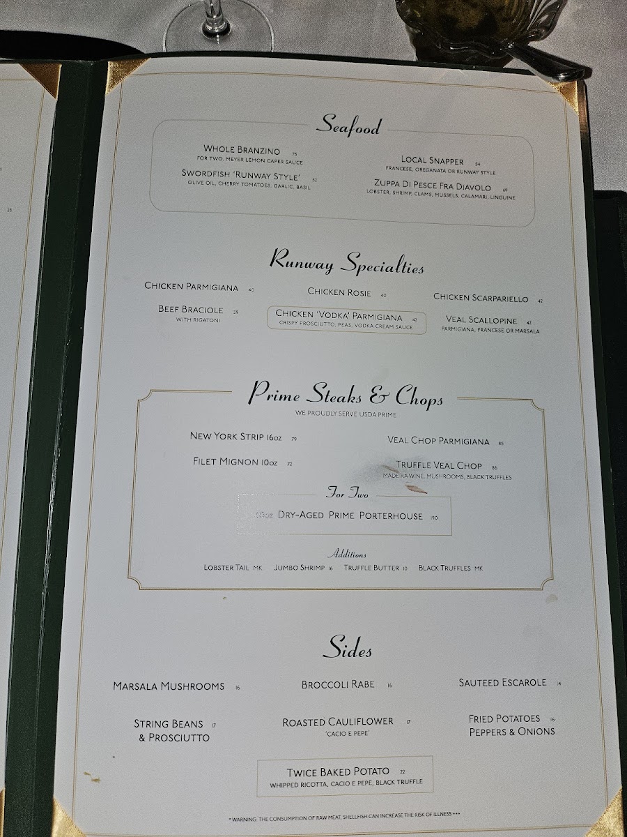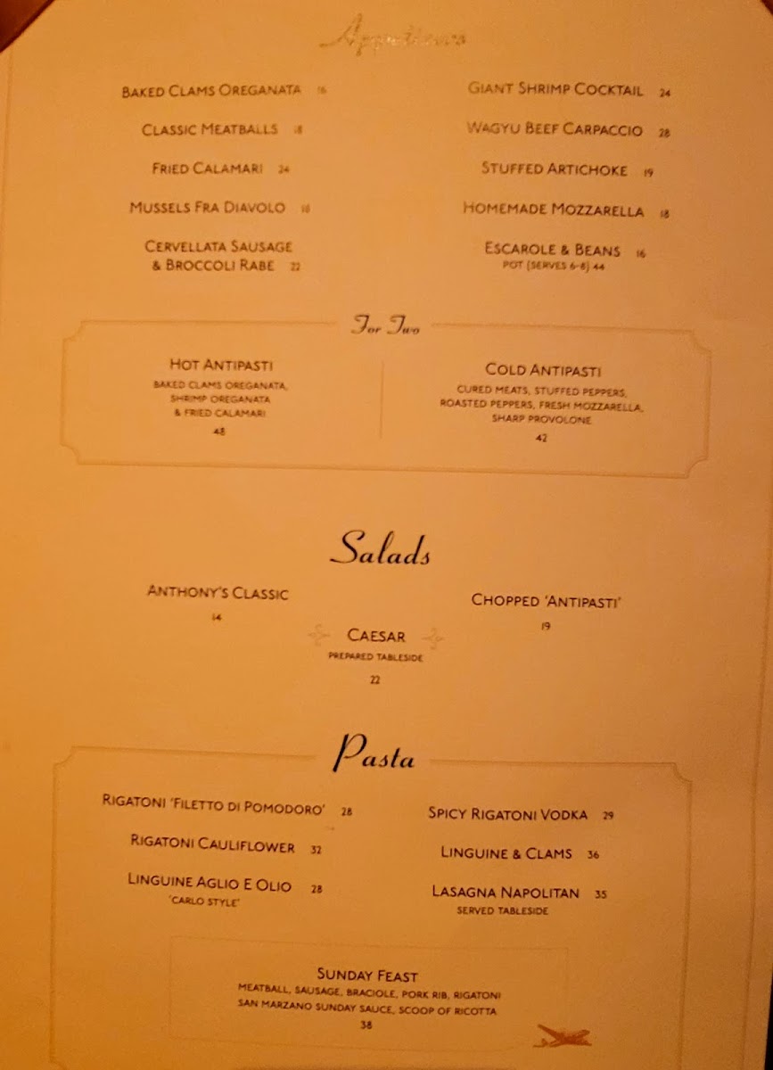 - Seafood Specialties: Indulge in highlights like the Zuppa Di Pesce Fra Diavolo for $74, or savor the Whole Branzino For Two at $90, both showcasing the freshness of the ocean.