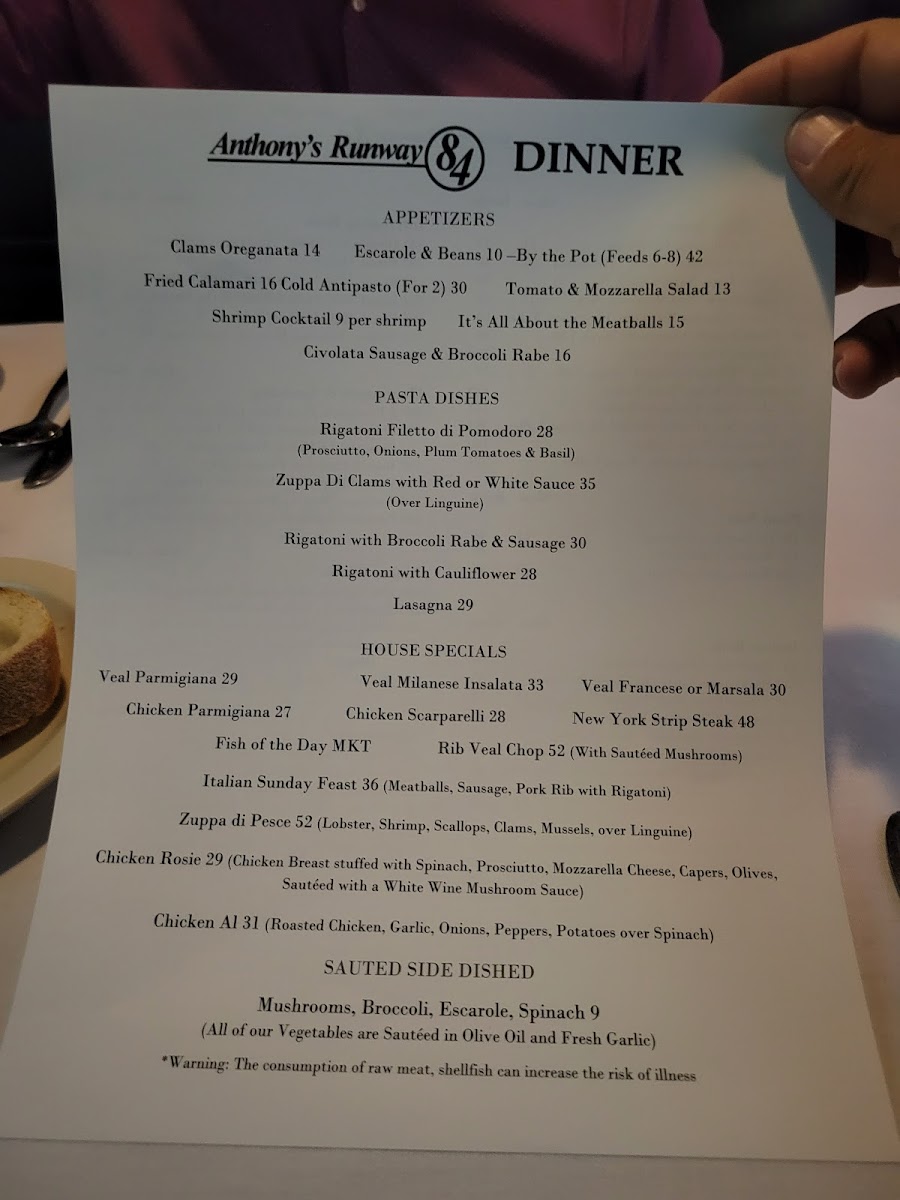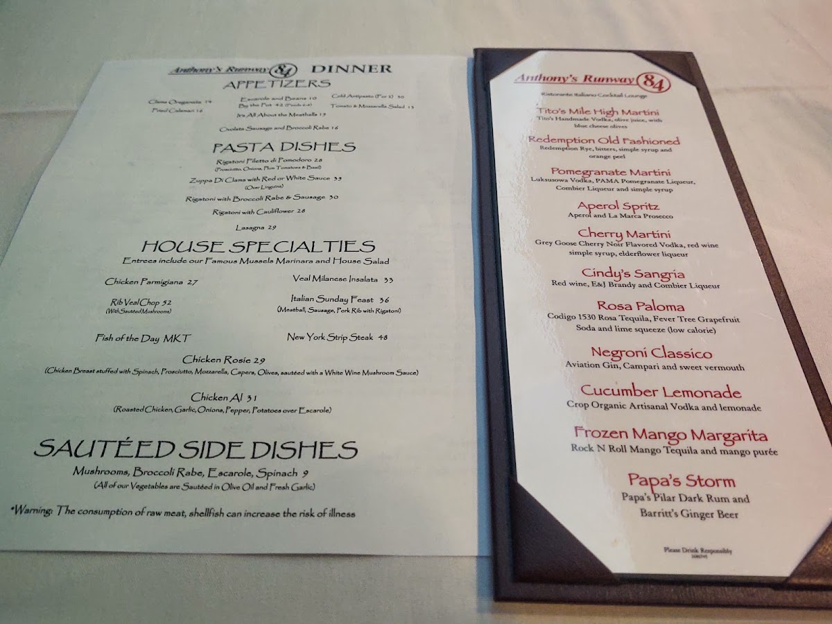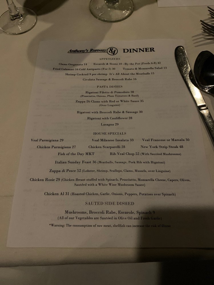 Anthony's Runway 84 Menu (2025 Update)